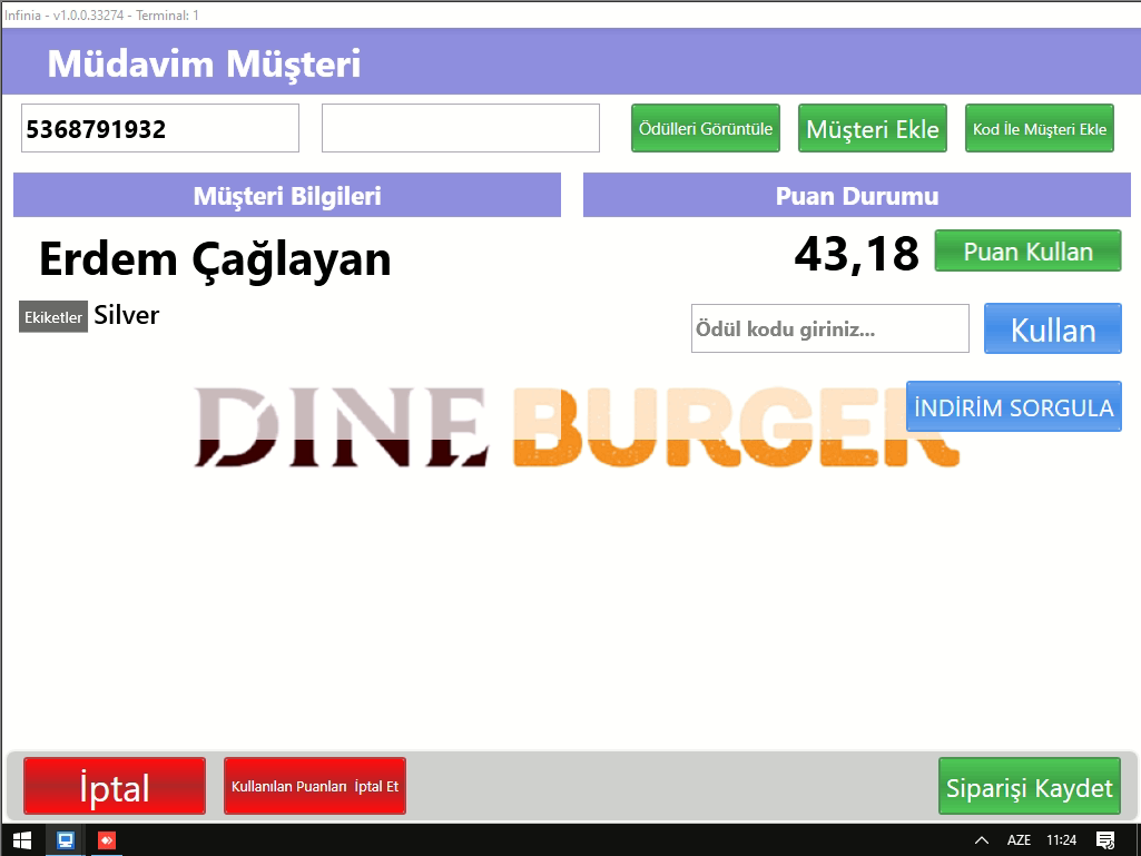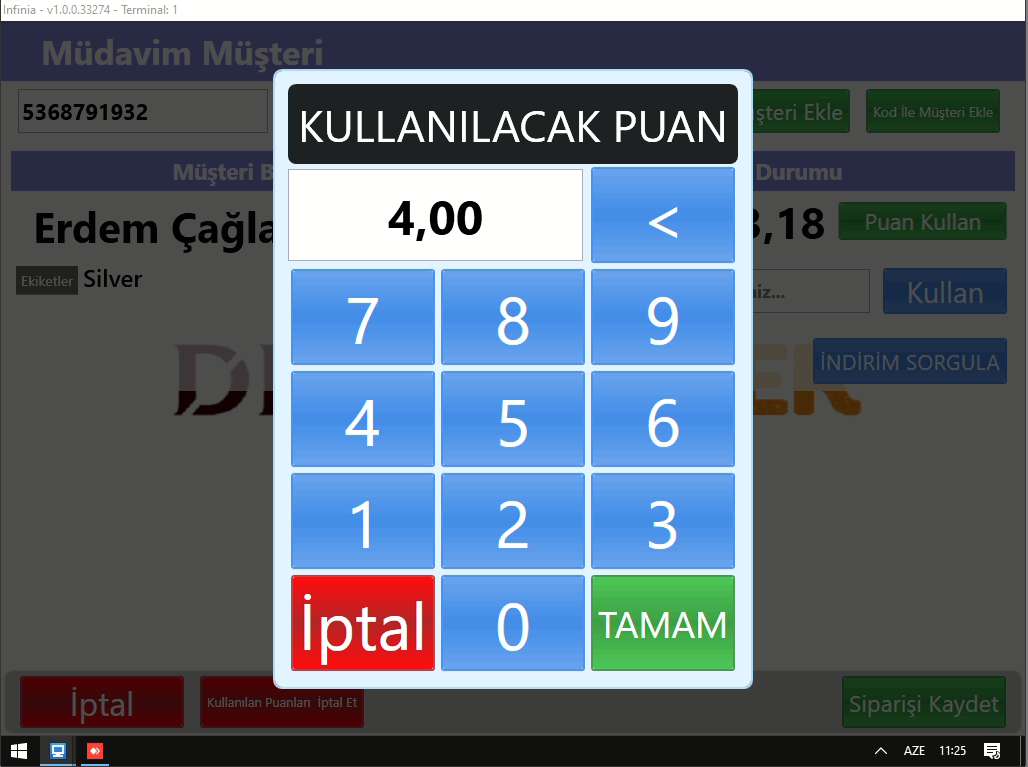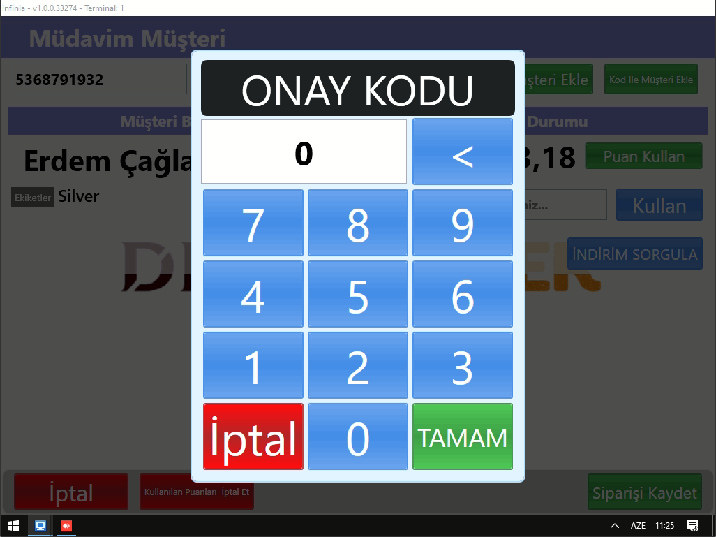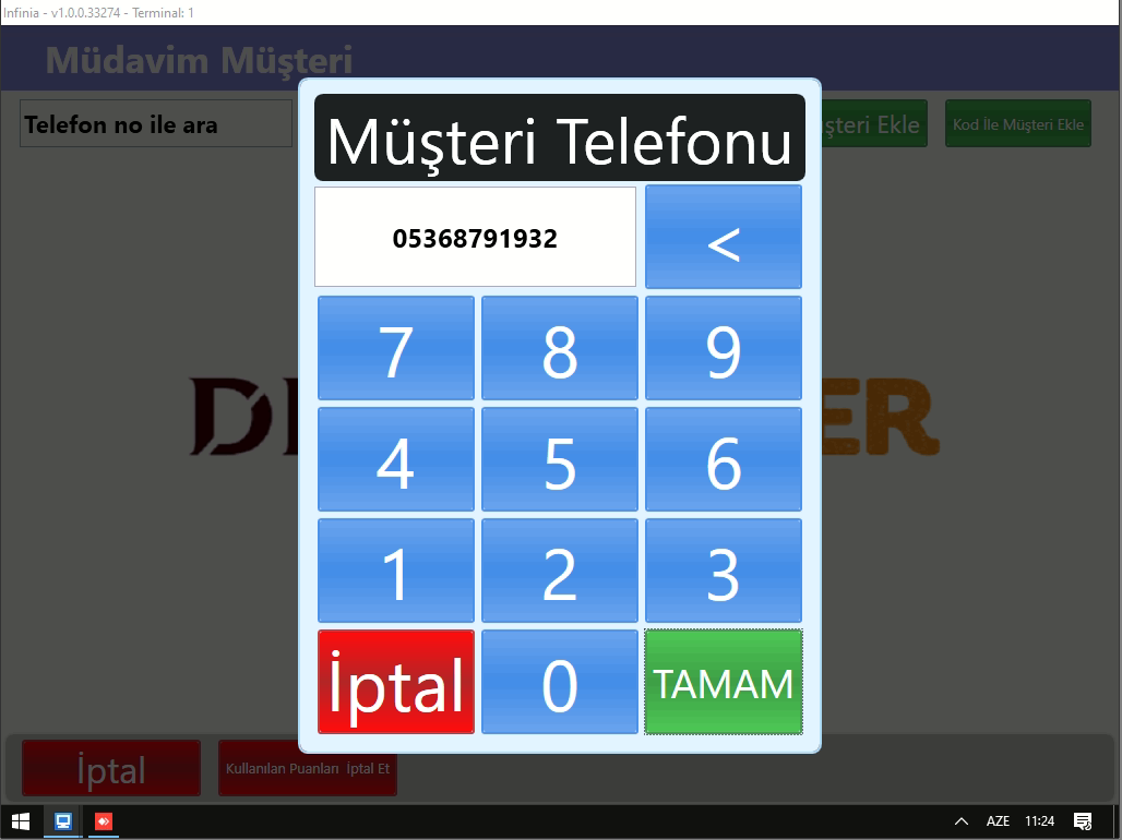 - Müşteri Telefon bilgisi girildikten sonra aşağıdaki ekran çıkmaktadır;