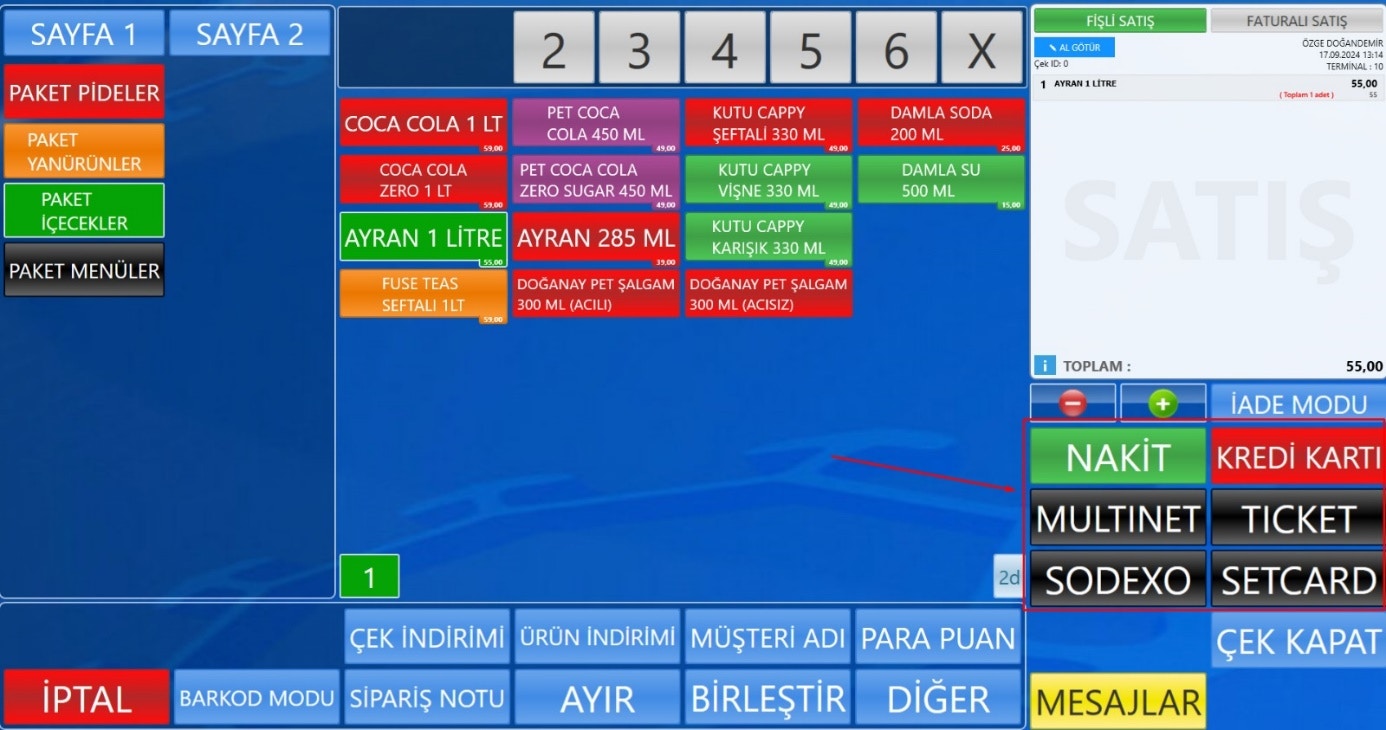 - Sepet içerisine ürün eklendikten sonra sağ üst kösede bulunan faturalı satış butonuna tıklanarak faturalı satış ekranı açılır.