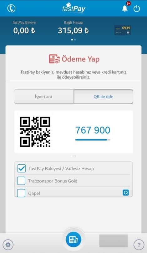 Girilen tutar sonrasında ekrana gelen kısıma telefonumuzda bulunan fastpay kodunu okutarak veya barkod okuyucu ile QR kodu okutarak giriş sağlayabiliriz.