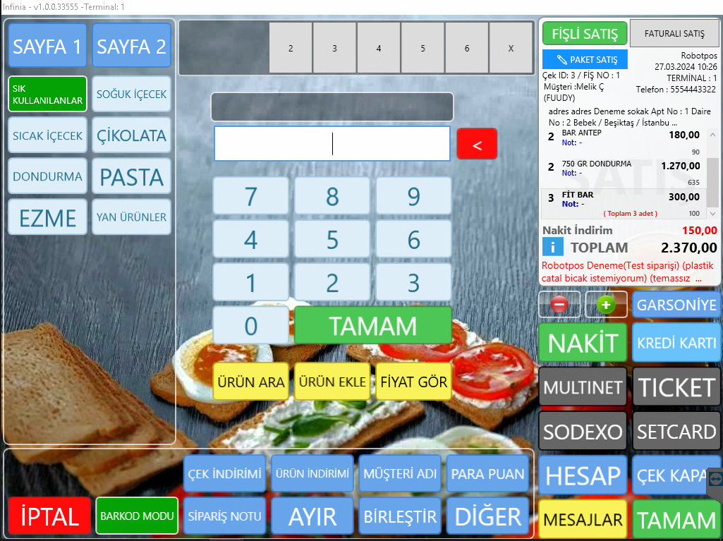 - Fuudy butonuna ürünler yazıcıdan otomatik olarak çıkacak ve sipariş kaydı gerçekleşecektir;