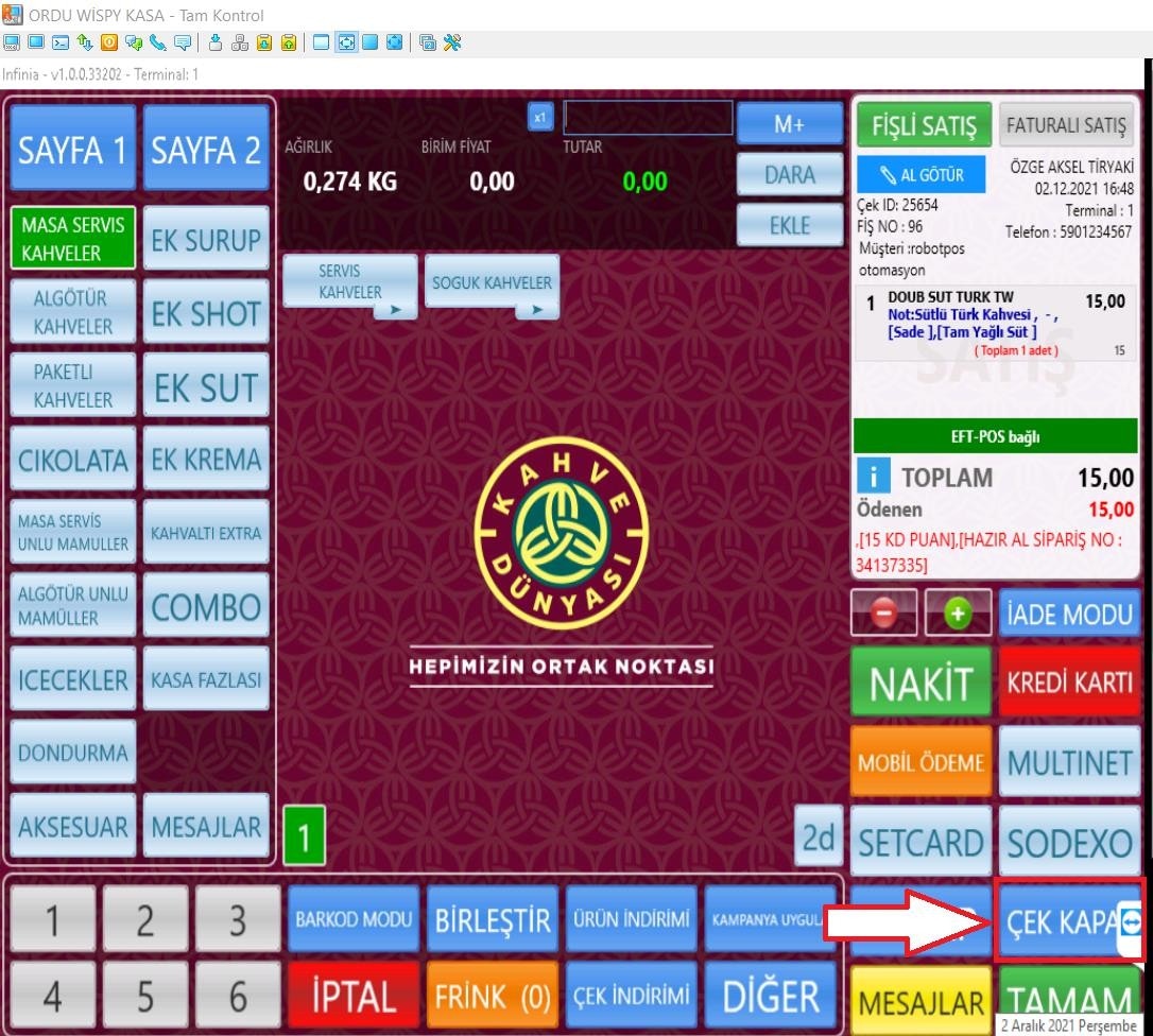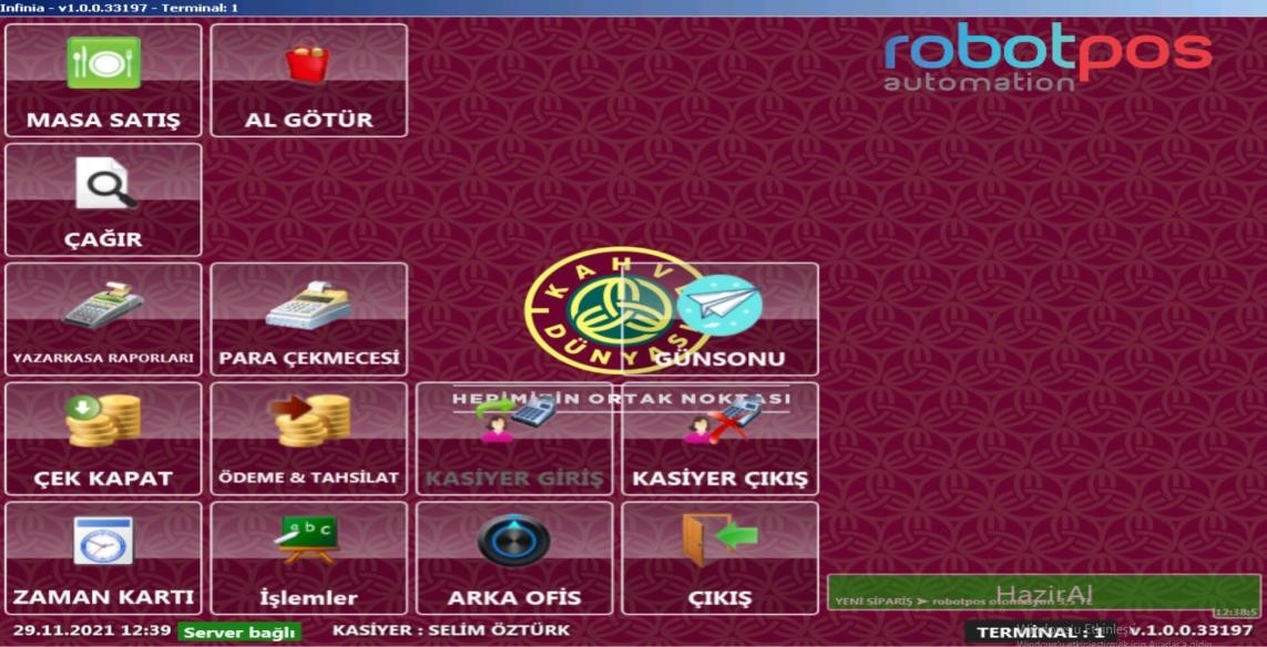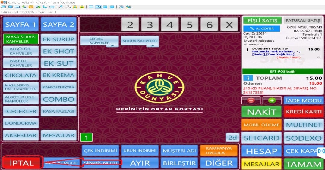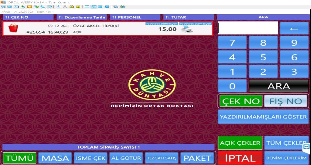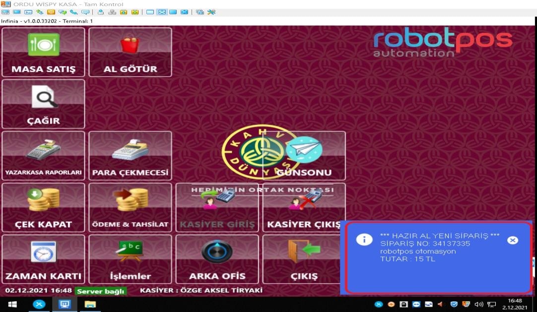 Müşterimiz kahve dünyası uygulaması üzerinden siparişini verdiğinde robotpos ekranında sağ alt kısımda ileti kutusu açılacak ve ses dosyası çalışacaktır.