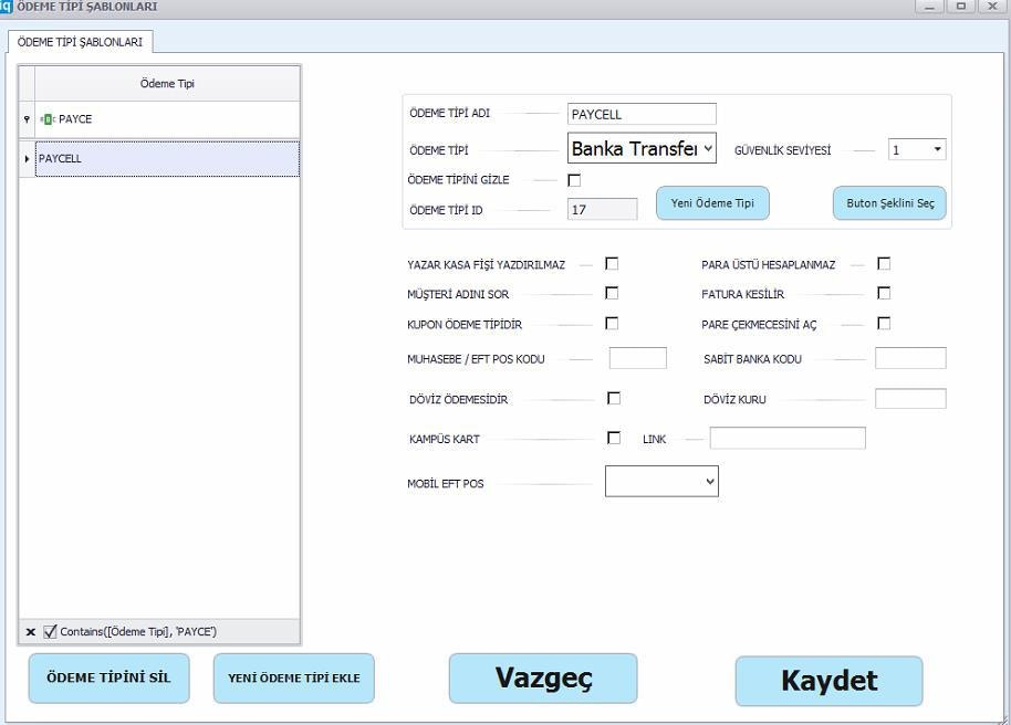 - Ödeme Tipi Oluşturulması
