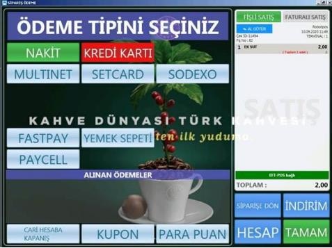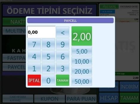 - Çek Kapat butonu tuşlanarak “Ödeme Tipi Seçiniz” penceresinde PAYCELL ödeme tipi tuşlanır,