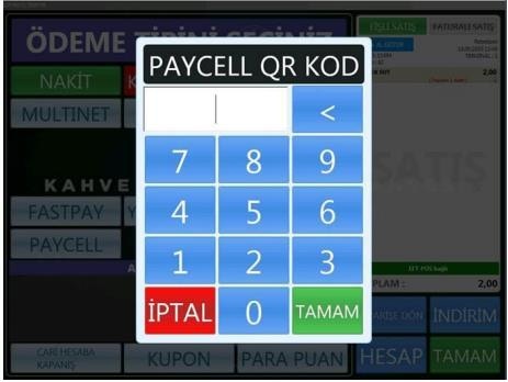 Müşterinin Paycell uygulamasındaki Qr kod bu alana barkod okuyucu yardımıyla okutulur ve ödeme tamamlanır,