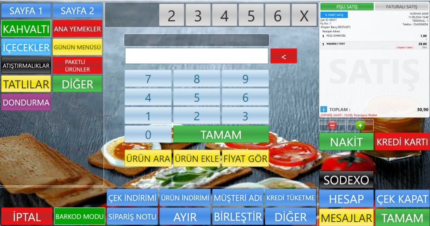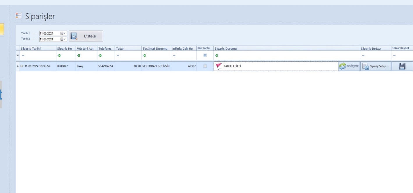 - Verilen sipariş entegrasyon uygulamasına yansır. Aynı şekilde müşterimiz RESTAJET üzerinden siparişini verdiğinde robotpos ekranında sağ alt kısımda ileti kutusu açılacak ve ses dosyası çalışacaktır;