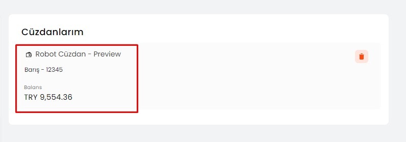 - Kart tanımlaması yapıldıktan sonra cüzdan bakiyesi bu alanda gözükmektedir;