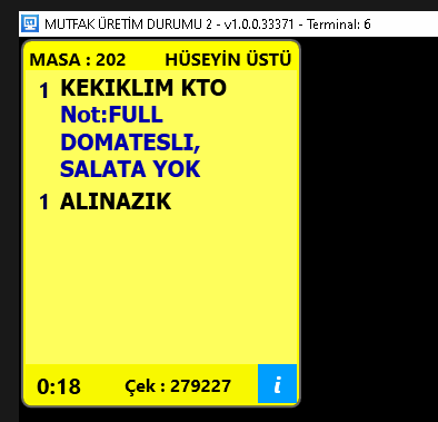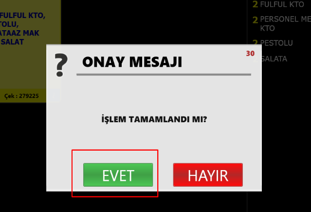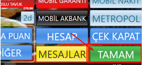 - Girilen siparişin ‘#tamam ’ tuşundan onayı verilir.