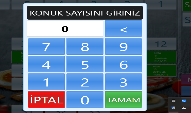 - Kişi sayısının seçimi tamamlandıktan sonra müşterinin vermiş olduğu sipariş ürün girişi sağlanır.