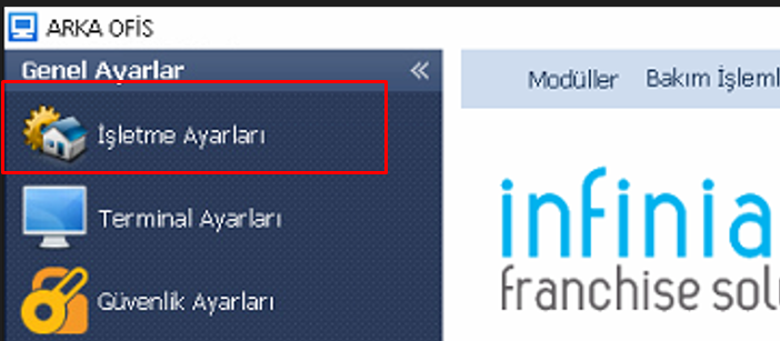 - Çıkan ekranda İŞLETME AYARLARI butonu tıklanır.