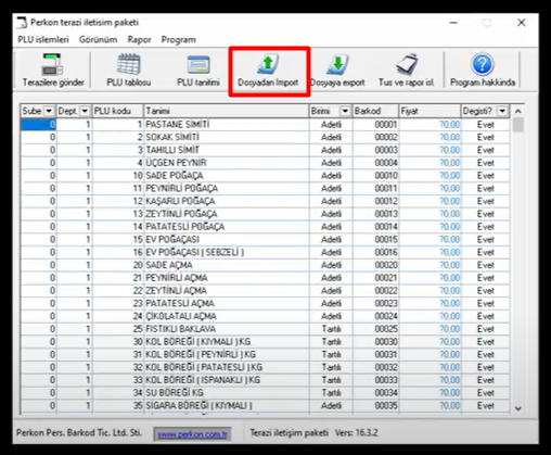 - Dosya aktarımı yapıldıktan sonra PERKON TERAZİ SİSTEMİ uygulaması açılır.
