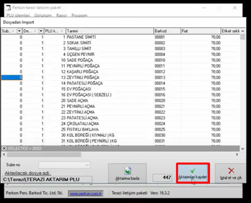 Aktarımı kaydet butonu ile yapılan işlemlerin kaydını gerçekleştirdikten sonra ürünlerin fiyat güncellemesi terazi ekranına yansımaktadır.
