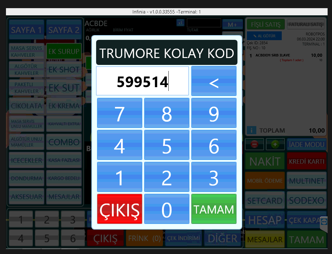 - Müşterinin Trumore uygulamasındaki QR Kod veya Hızlı Kod ile giriş yapılır.