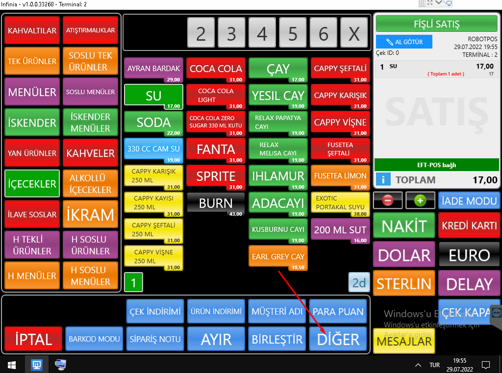 - Sipariş oluşturulduktan sonra Diğer Butonu ardından TUMICTUR butonu tuşlanır