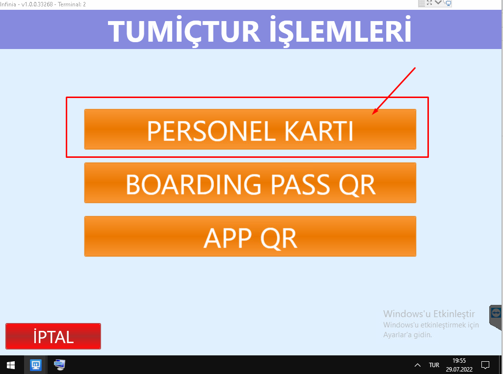 - TUMICTUR butonu tuşlandıktan sonra Personel Kartı butonu tuşlanır