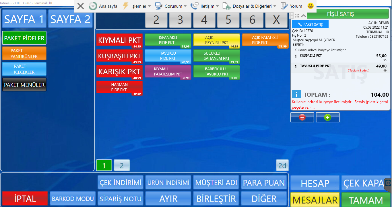 - Yemek Sepeti butonuna ürünler yazıcıdan otomatik olarak çıkacak ve sipariş kaydı gerçekleşecektir;