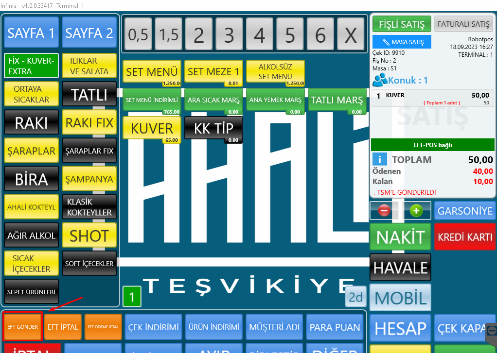 - TSM cihazı üzerinde ilgili masa numarası seçilir.