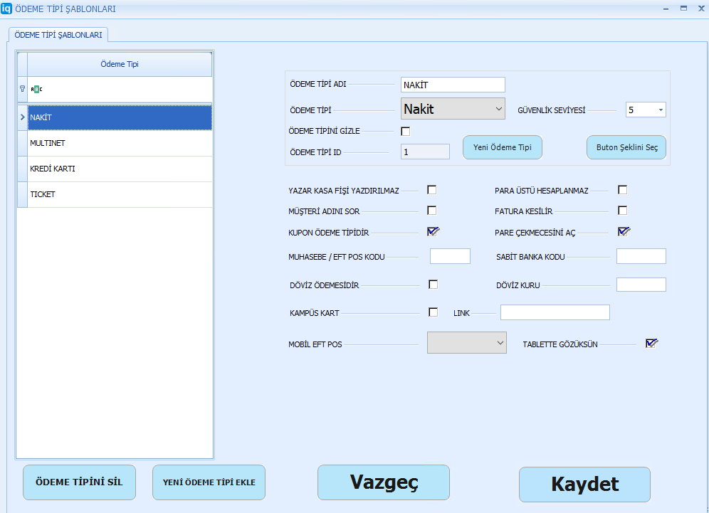- Multi kombonuzu satış ekranında aktif hale getirmek için, menü şablonunda ilgili menü başlığına giriş yapmanız gerekir.