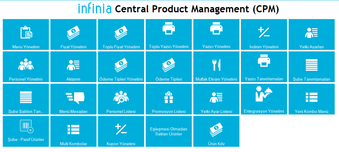 Merkezi Menü Yönetim Sistemimizi tercih ettiğiniz için teşekkür ederiz. Merkezi Menü Yönetim Sistemimiz , şubelerimizin menü ekranlarını, fiyatlandırmalarını, yazıcı ve mutfak ekranı ayarlarını, ödeme tiplerini, indirim ve promosyon yönetimini, şube ekranındaki yetkilendirme ayarlarını ve kupon yönetimini tek bir merkezden kontrol edebilmenizi sağlar. Bu sistem, şubeler arası bağlantı kurmadan yapılan tüm işlemleri anında satış ekranlarına aktarma imkanı sunar. Yıllar içinde gelişen teknolojilere uyum sağlayarak tasarlanan sistemimiz, kullanım kolaylığı ve kullanıcı yönetimi açısından en uygun hale getirilmiştir. Amacımız, işletmenizin tüm şubelerinde verimliliği artırmak ve süreçleri optimize etmektir.MENÜ YÖNETİM EKRANI