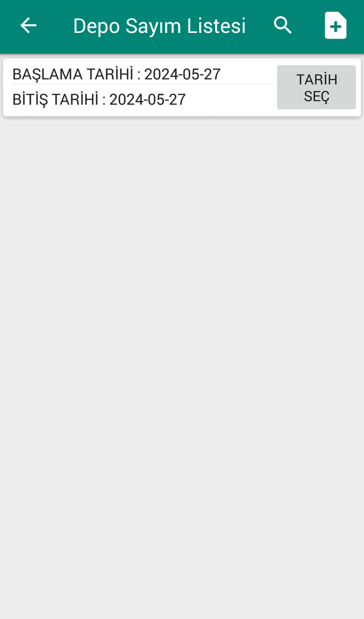 Depo Sayım:### Ana menüden ‘### Depo sayım### ’ seçeneğinden giriş sağlıyoruz. Açılan ekranda daha önce girilmiş olan sayımları görmek için tarih seçimi yapıp uygula dememiz yeterlidir.