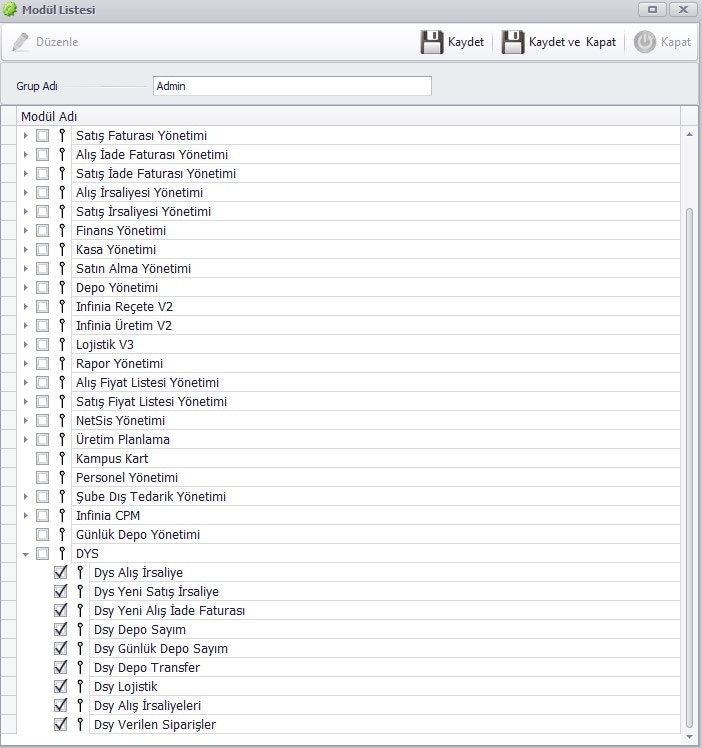 DYS kullanıcı yetki ayarları, IQ ERP uygulaması tarafından modül modül belirlenerek giriş yapan kullanıcının hangi işlemleri gerçekleştirebileceğini kontrol etmemizi sağlar. Bu ayarlar sayesinde, izin verilen kullanıcılara ilgili modüllere erişim yetkisi tanımlanır.