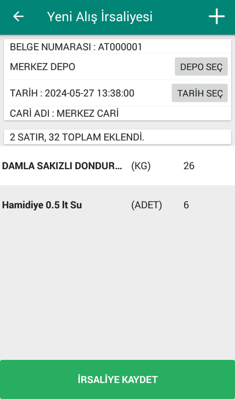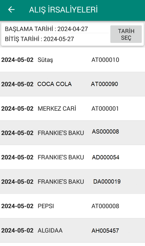 Ana menüden “Alış İrsaliyeleri” sekmesine giriş yaptığınızda, tüm alış irsaliyelerini detaylı bir şekilde görüntüleyebilirsiniz. Bu ekranda, tarih filtresi uygulayarak belirli tarihler arasındaki irsaliyeleri de inceleme imkanına sahipsiniz. İlgili bir irsaliyenin üzerine tıkladığınızda, o irsaliyenin içeriğini ayrıntılı olarak görüntüleyebilir ve ürün miktarlarına ilişkin bilgileri detaylı şekilde gözlemleyebilirsiniz.