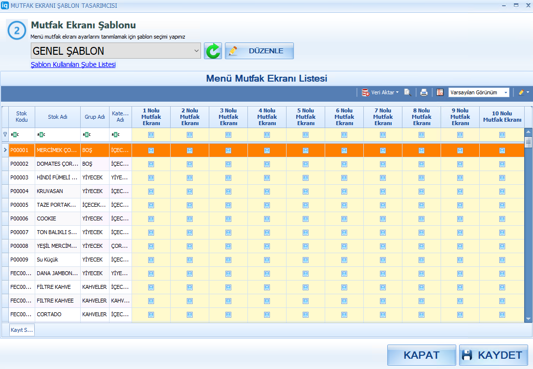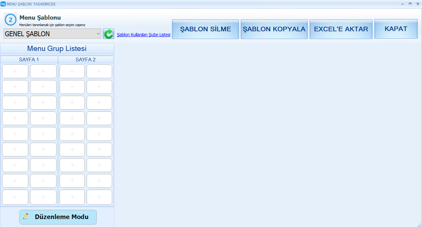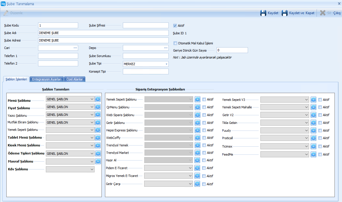 - Örneğin, tüm şubelerde aynı menü şablonunu kullanmak istiyorsanız, bu modül üzerinden ilgili şablonu seçip toplu olarak tüm şubelere uygulayabilirsiniz.