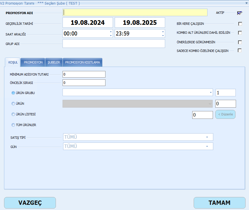 - Tüm Ürünler : Promosyonun tüm ürünleri kapsayacak şekilde tanımlayabilirsiniz.