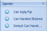 Cari açılış fişi kaydetmek için sol kısımdaki cari açılış fişi seçilir. Açılan cari listesi ekranında ilgili cariyi seçerek DEVİR ALACAK ve DEVİR BORÇ alanlarına bir önceki döneme ait alacak ve borç girişleri yapılır. Veri girişinden sonra belgeyi kaydedilir. Carilerinizin hareketlerini genel ve detaylı olarak raporlar üzerinden kontrol etmek için cari modülü sol kısımda yer alan cari hareket ekstresi ve detaylı cari hareket ekstresi seçeneklerini kullanabilirsiniz. (Görsel 12)