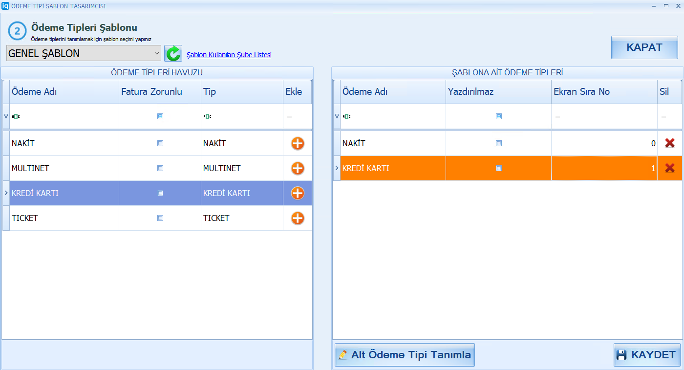 - Multi kombonuzu satış ekranında aktif hale getirmek için, menü şablonunda ilgili menü başlığına giriş yapmanız gerekir.