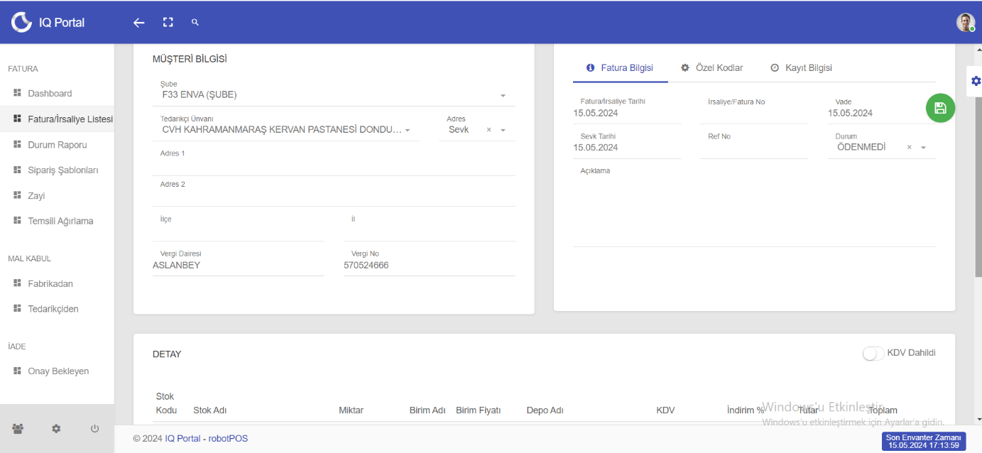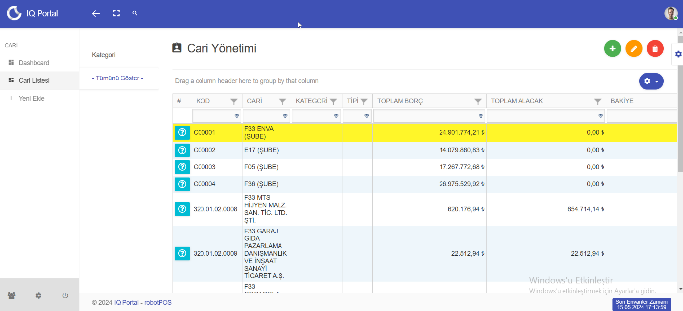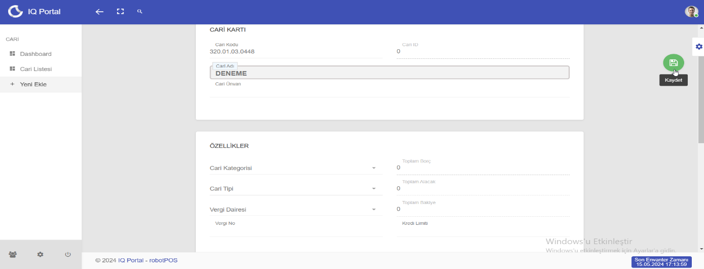 IQ Portal, franchise veya şubelerin kendi işletmelerine ait stok maliyetleri ile ilgili giriş işlemlerini yapabildikleri ve bu girişlere istinaden raporlama alabildikleri bir paneldir. Panel, modül bazlı bir yapıya sahiptir yani farklı işlevler veya görevler için ayrı modüller bulunmaktadır. Stok girişlerinden raporlamalara kadar geniş bir yelpazede işlevsellik sunar, bu da işletmelerin kendi iç operasyonlarını daha etkin bir şekilde yönetmelerine olanak tanır.Cari Modülü