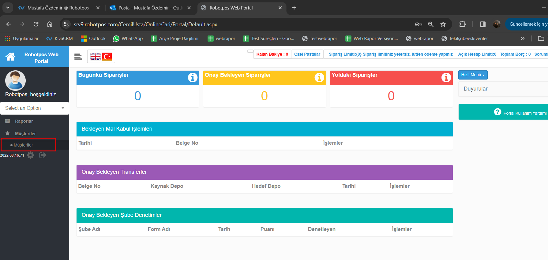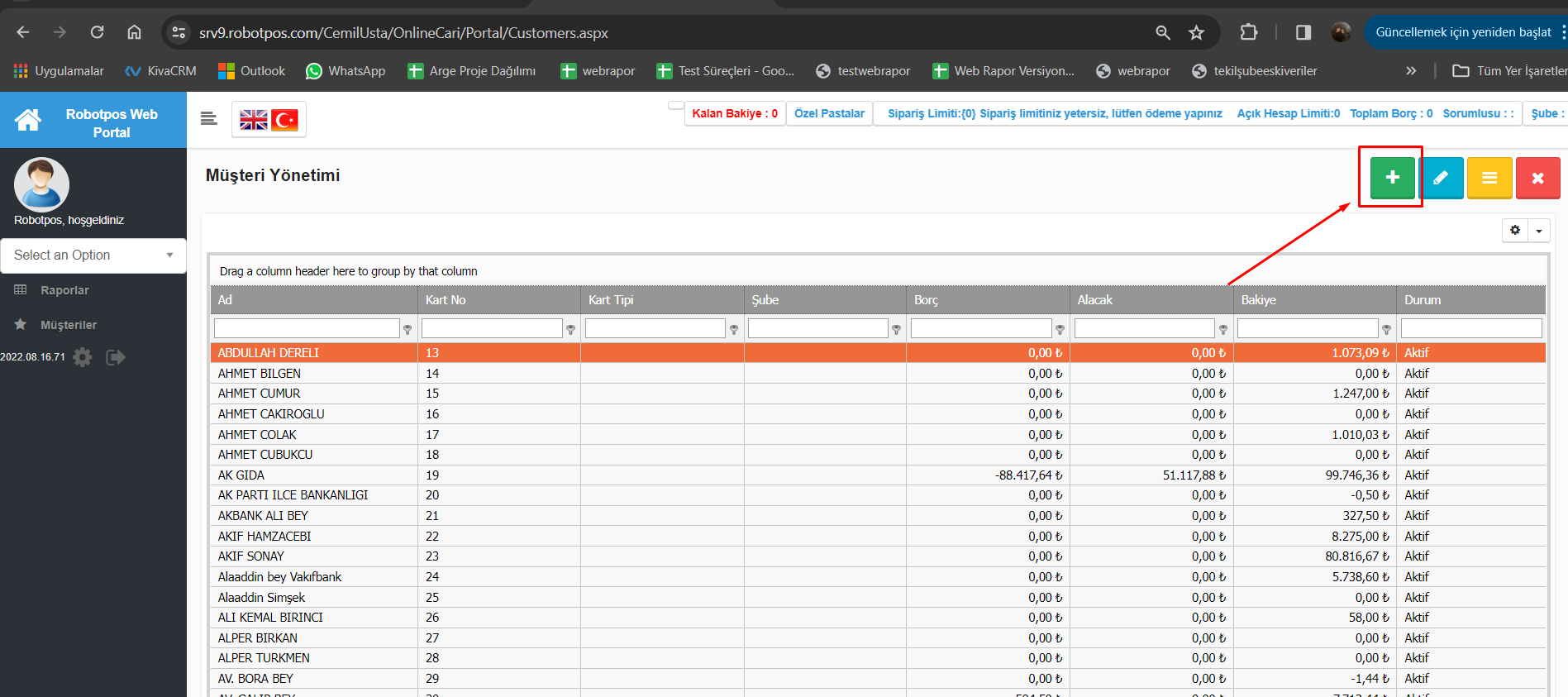 - Müşteri Ekleme: Portala giriş yapıldıktan sonra “Müşteriler” bölümü açılır.