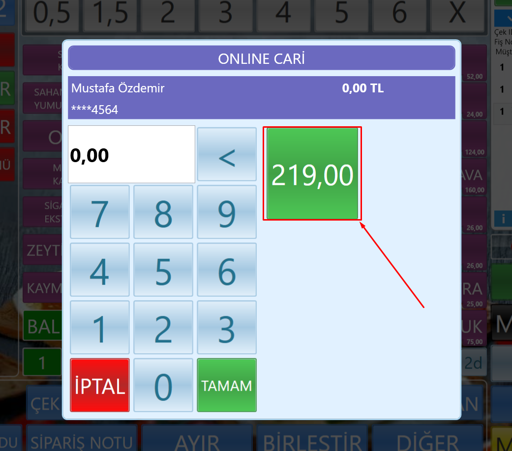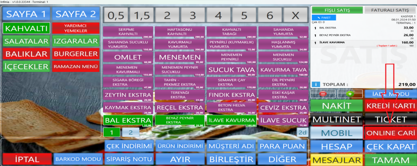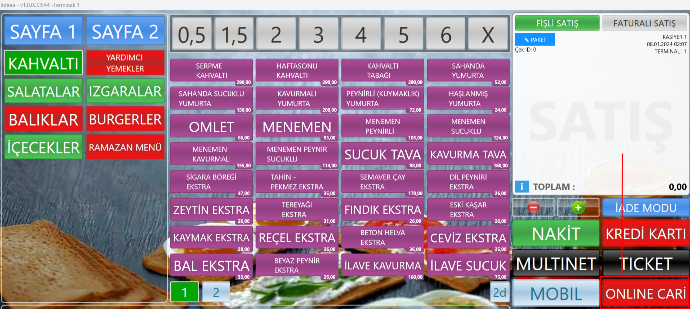 - Satış ekranı açılarak “ONLINE CARİ” ödeme tipi seçilir.