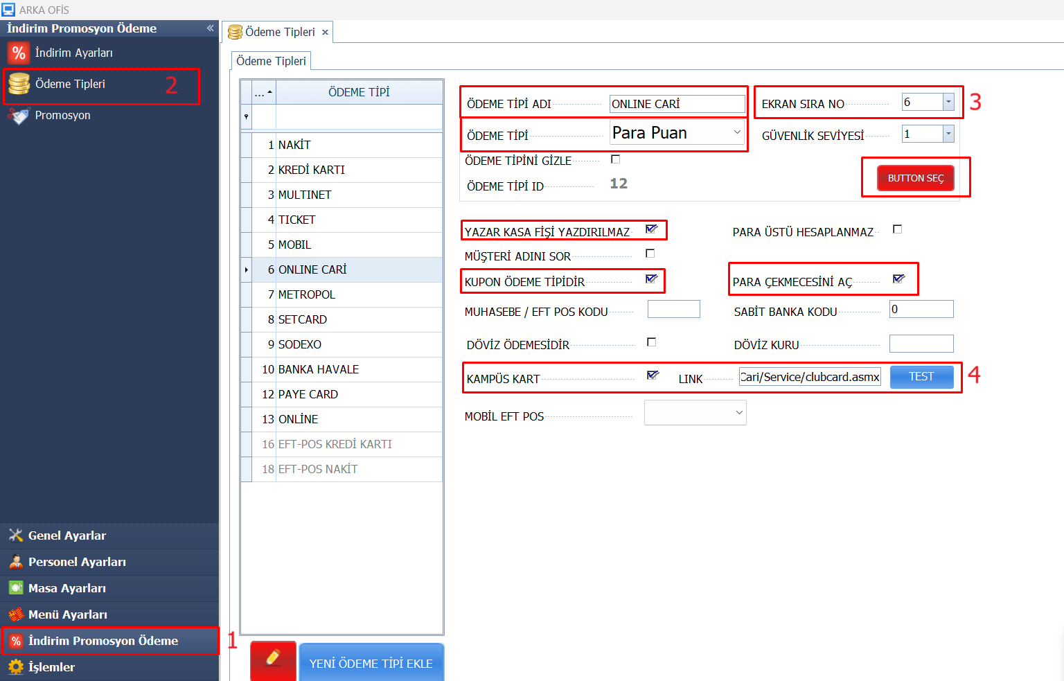 - 3: Açılan ekranda “Para Puan” butonuna tıklanır ve ardından görseldeki ayarların işaretlenmesi gerekmektedir.