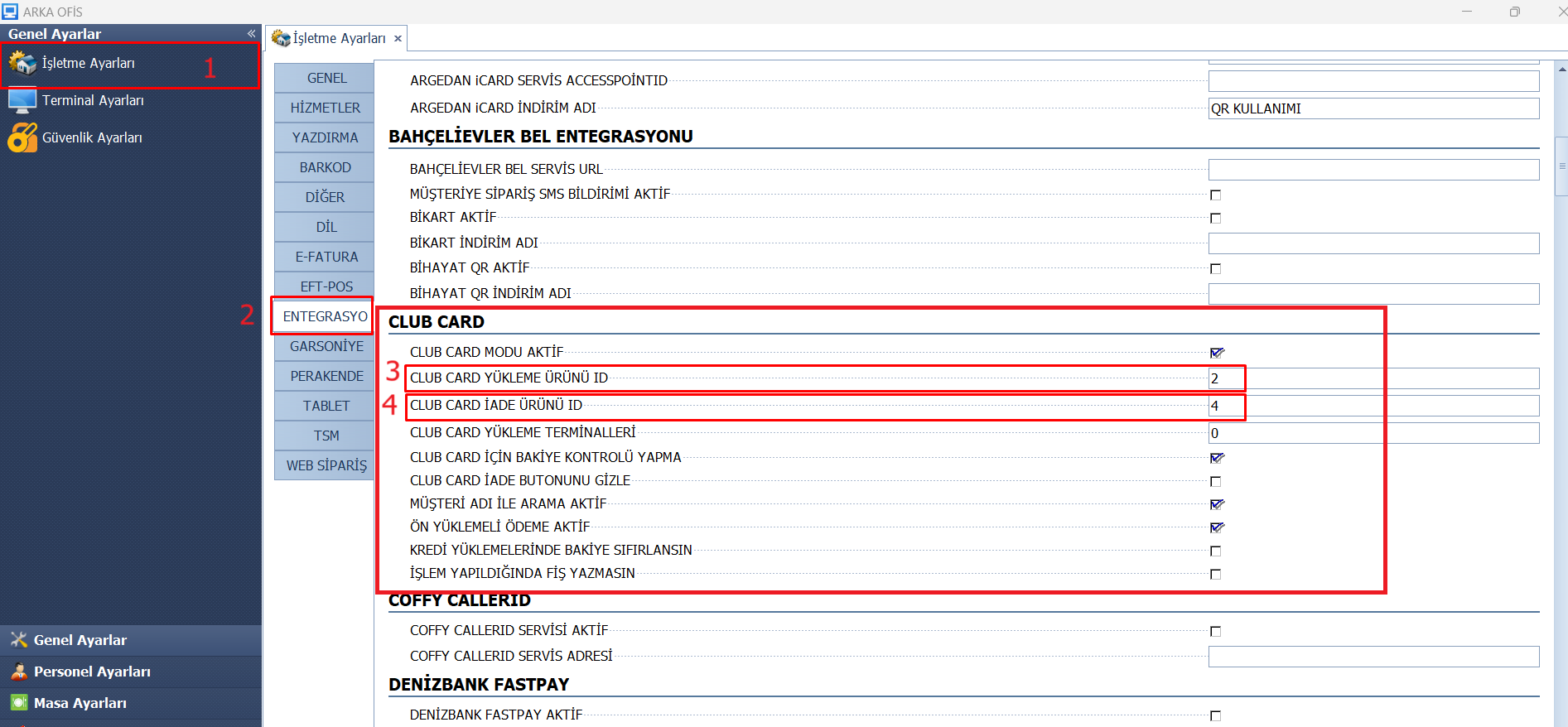 - 5: Ardından arka ofisten “İşletme Ayarları” → “Entegrasyonlar” kolonu açılır ve görseldeki şekilde ayarlar doldurulur.