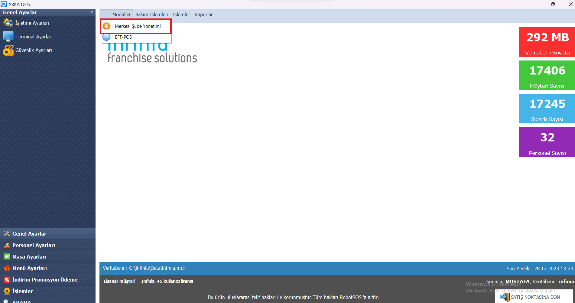 - 2: Modüller kısmından “Merkezi Şube Yönetimi”