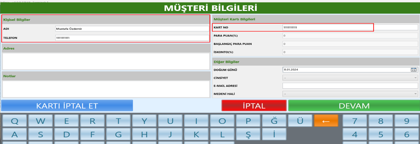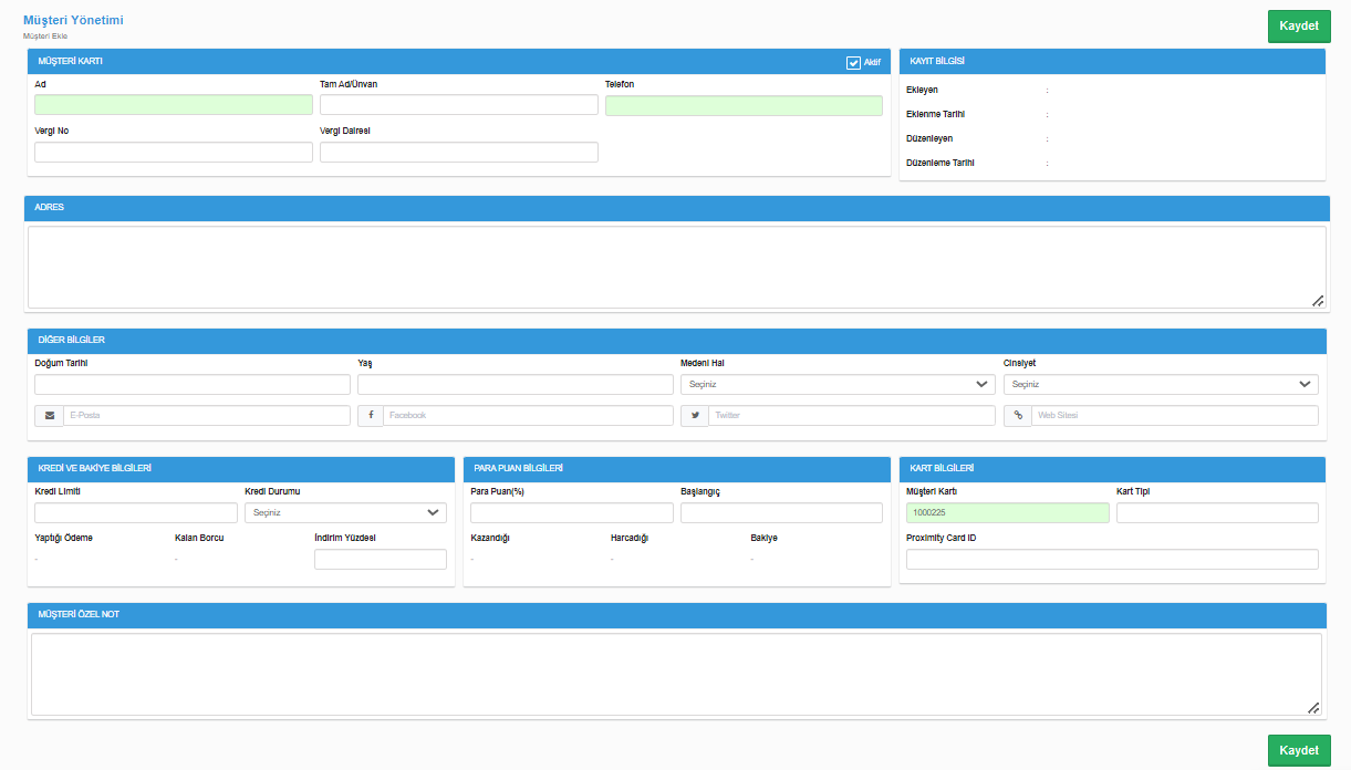 - Açılan ekranda müşteri bilgileri doldurularak kaydet tuşuna basılır.