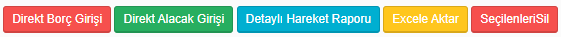 - Müşteri hareketlerine girildikten sonra sağ üste bulunan butonlar;