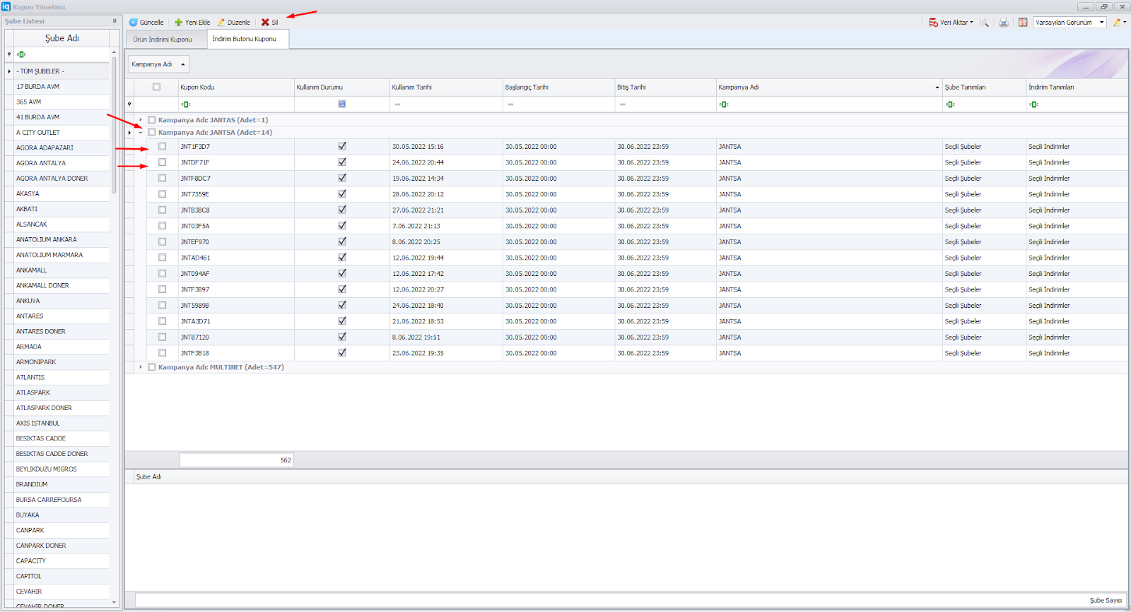 Kupon Bilgilerinin Oluşturulması ve Silinmesi